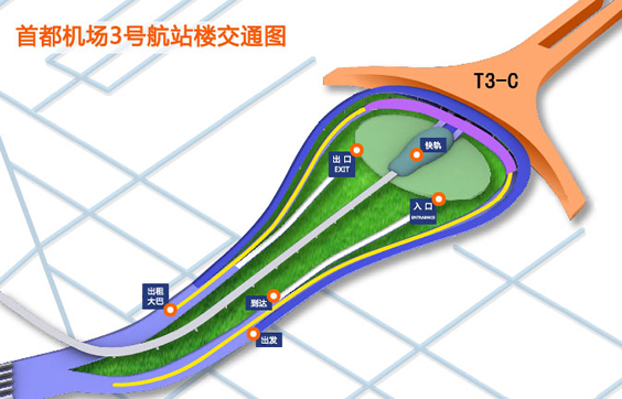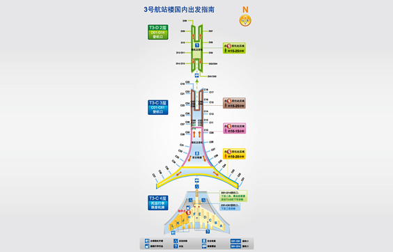 T3-D國內出發旅客可采用擺渡車/APM通行。